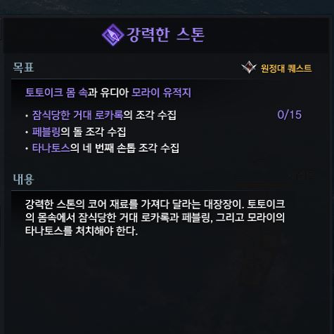 그리고 토토이크의 침묵하는 거인의 숲에서 위쪽에 있는 토토이크의 몸속 던전을 깨주시면 됩니다.