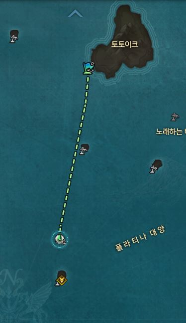 토토이크 섬은 고요의 섬 위쪽에 있으므로 항해를 해주시면 됩니다.