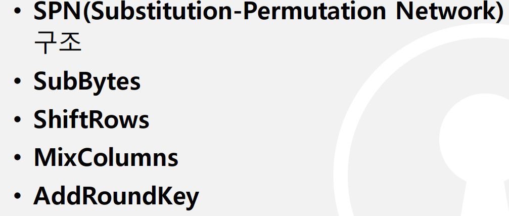 ① AES는 키의 길이에 따라 10~14 라운드로 구성된다.