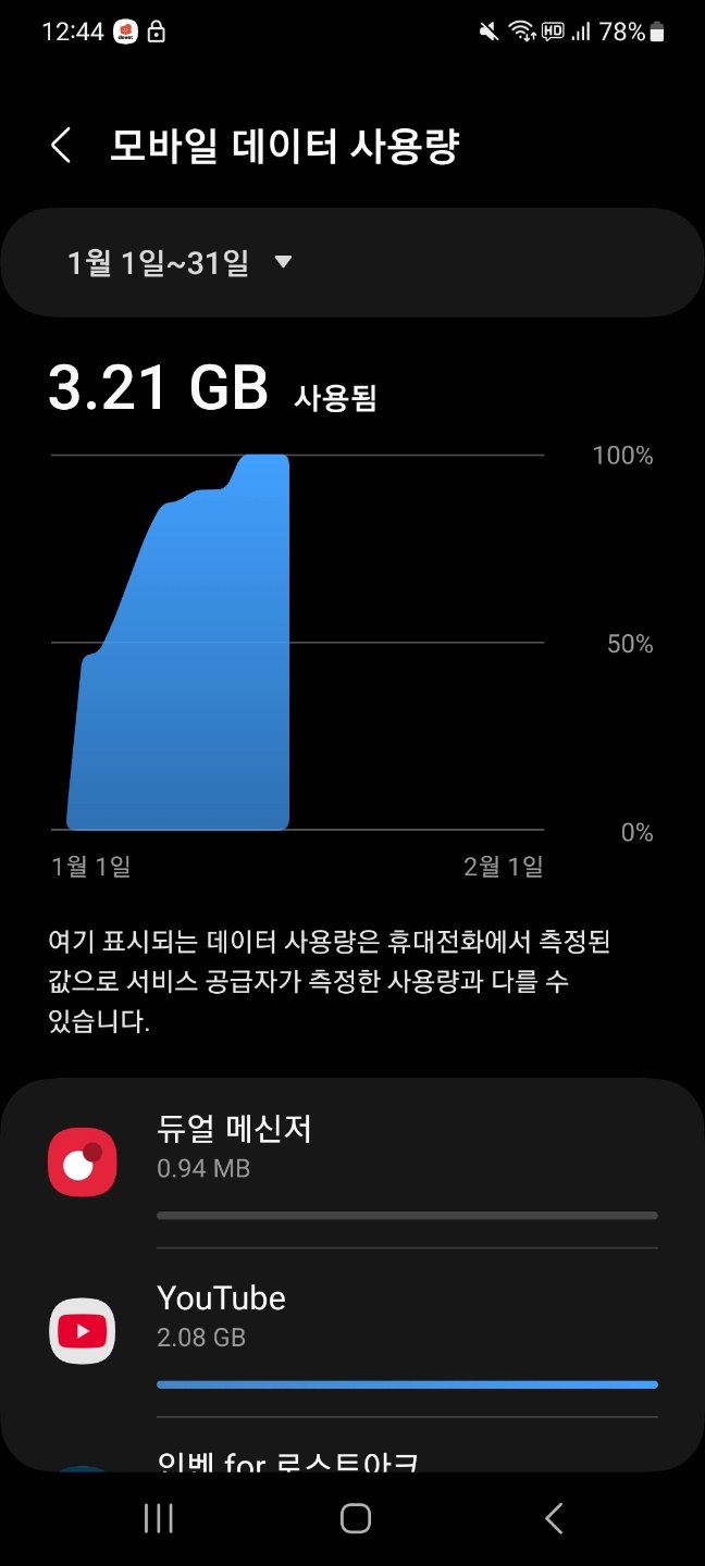 스마트폰 데이터 사용량은 앱 종류와 사용 방식에 따라 차이가 발생할 수 있습니다.